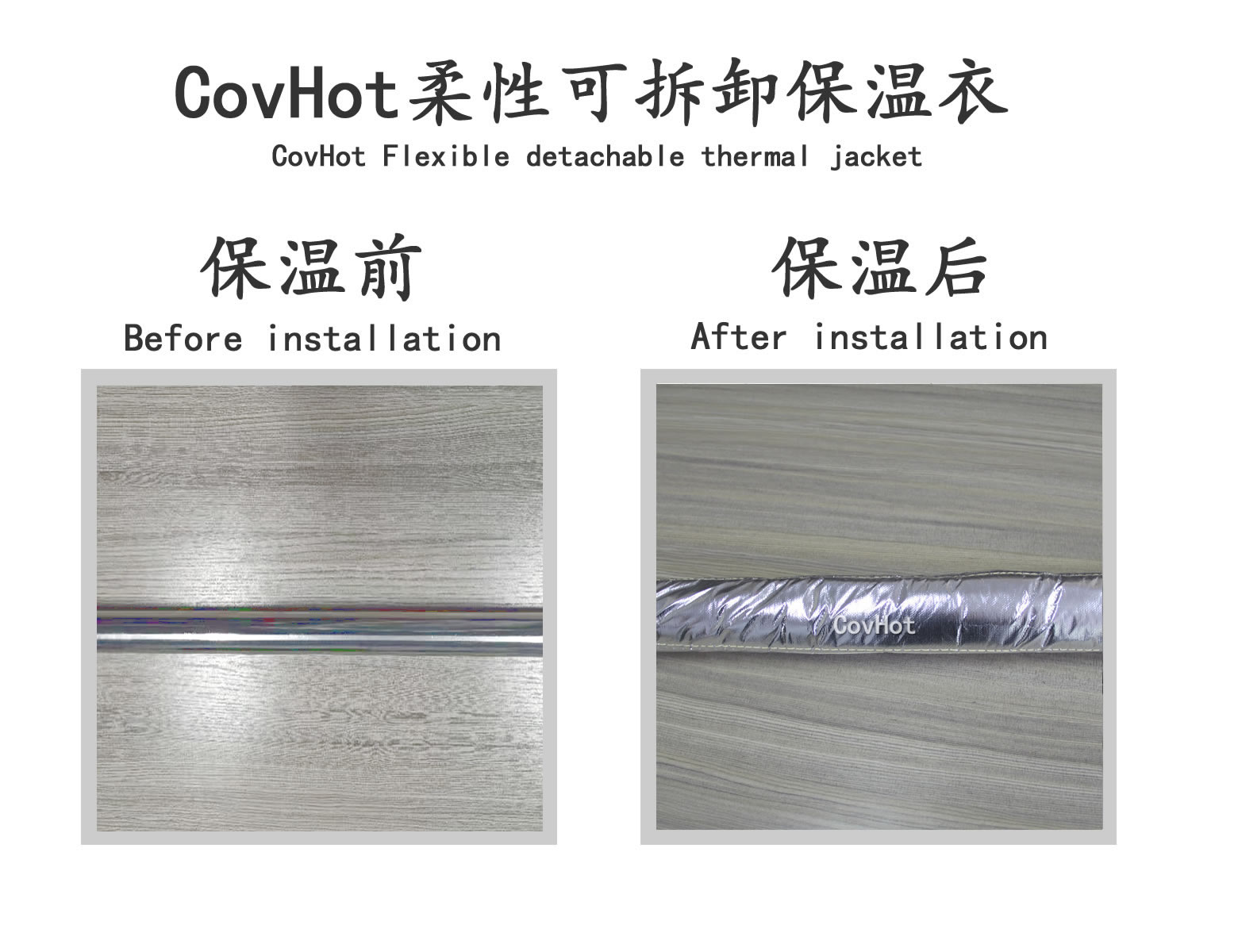 Covhot自粘式保溫帶產品作為方便拆卸的保溫隔熱產品,具有耐高溫、導熱系數低、耐酸堿、防火阻燃能力。